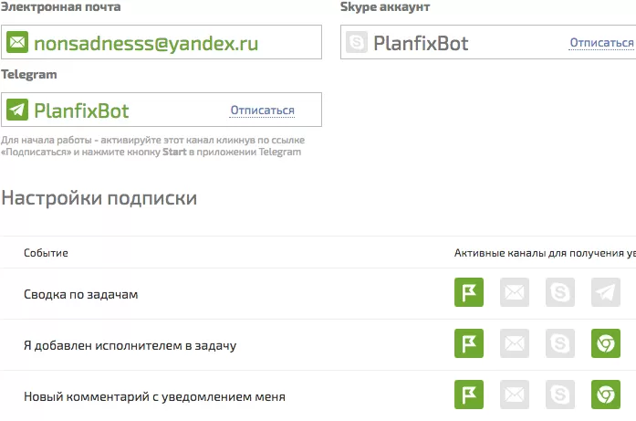 - нужно было остро решить вопрос с сообщениями по каждому отдельному проекту. Общий чат Скайпа в тот момент вызывал кровь из глаз, и забегая вперед — спасибо вам, что так и не уступили напору клиентов и не реализовали общий чат в Планфиксе, потому что в 95% компаний он превратился бы в мусорку. У нас эта мусорка — в Телеграме:)